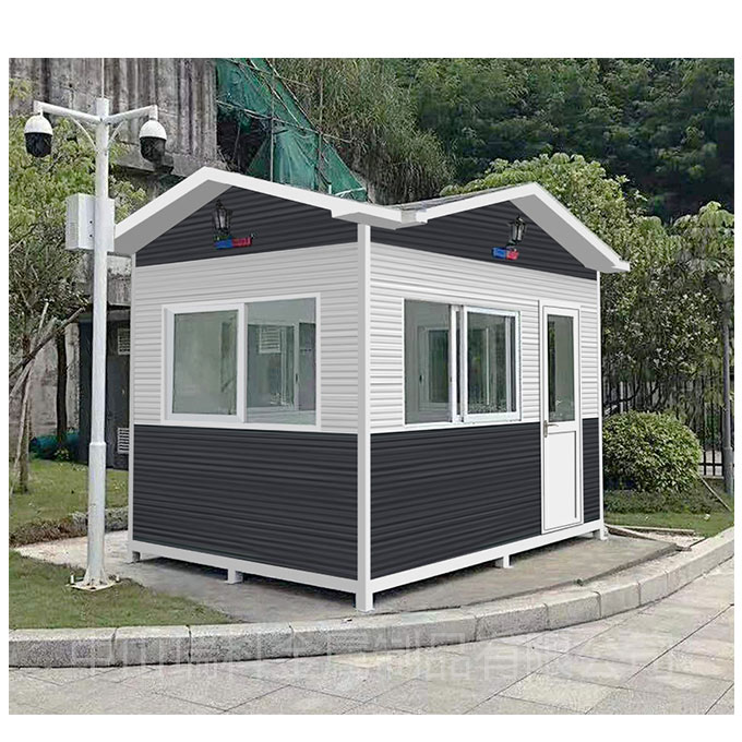 關于不同分類的崗亭的功用 1、活動崗亭。 活動崗亭是一種以輕鋼為骨架,以夾芯板為圍護材料,以標準模數(shù)系列進行空間合,構件采用螺栓連接,全新概念的環(huán)保經濟型活動崗